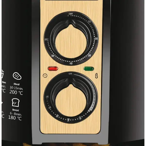 The variable temperature control helps you set the right temperature required for your dish. The rapid air convention heating inside the fryer results in quick and even cooking. Once the food basket is inserted into the chamber and by selecting the correct heat setting on the temperature dial, the hot air induces a rapid air flow around the food in the basket.