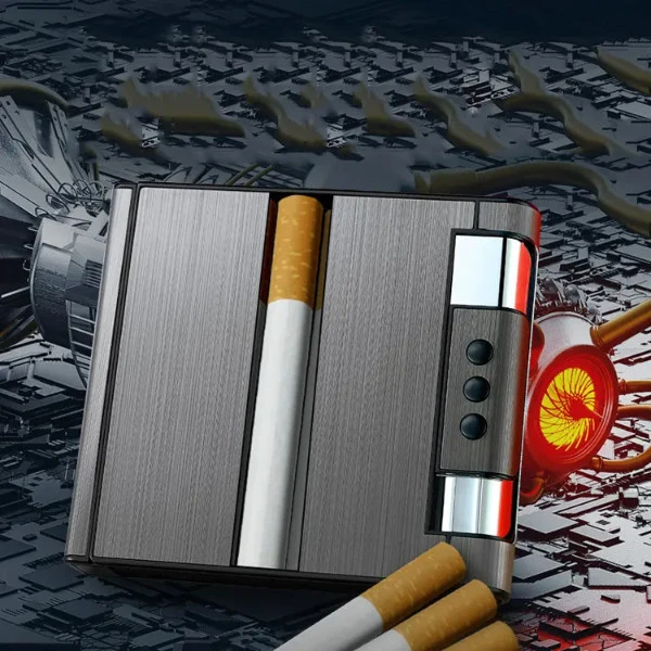 Cigarette Case with Electric Coil Lighter Rechargeable Holds 10 Cigarettes AR-YH-YH073