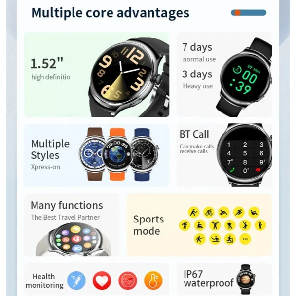 Smart Watch 1.52inch HD Amoled IP67 Waterproof Multi DIal Health Monitoring Z93PRO