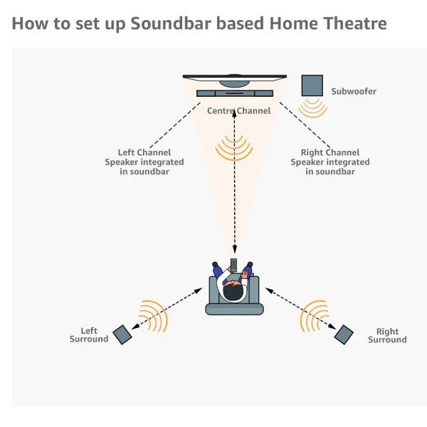 2X Front and 2X Rear High quality 1-inch tweeters in the sound bar and rear speakers reproduce high frequency to enrich the surround sound.