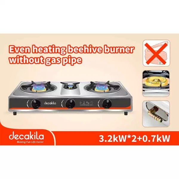Decakila Gas Cooker 3 Burner Even Heating Beehive Auto Ignition Stainless Steel KMGS014M