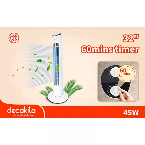 Decakila Tower Fan 32 Inch 45W Shaded Pole Motor 59db Noise Reduction 60Min Timer KEFC033W